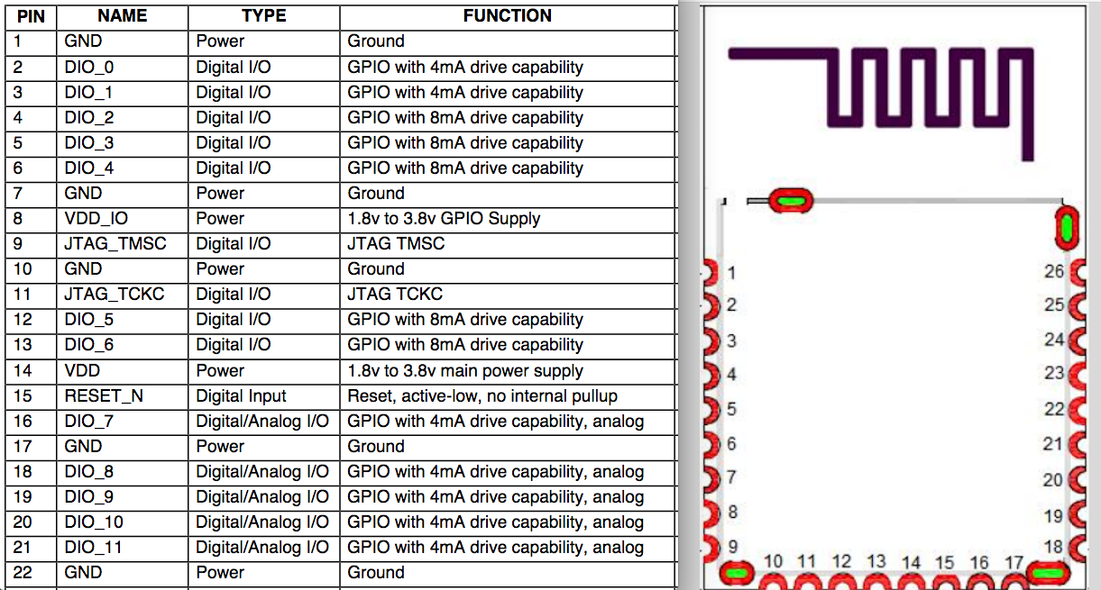 Next, we need to identify the edge connector. In the above example on the right side, I show one of the modules with its shielding case removed. If a module’s datasheet cannot be located, you may have to remove the shielding to gain access to the MCU in order to trace out the needed pins. In this case, the manufacturer of the module has made a datasheet available with the needed pinout information.