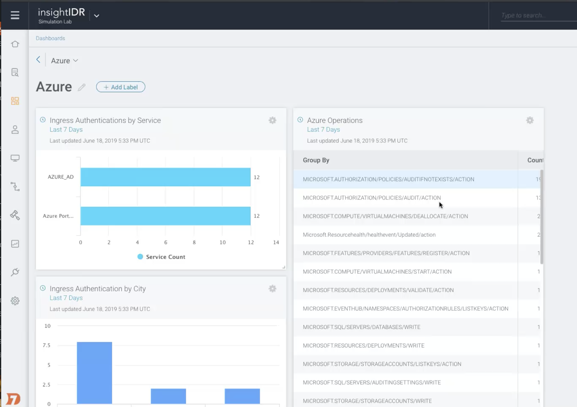 From there, InsightIDR applies User Behavior Analytics to Office 365 and Azure Active Directory data for threat detection and alerting on potential attacks based on things like suspicious Multi-Country Authentications. If your Azure subscription includes Security Center, those will come through Azure Monitor service (no additional configuration required). Also, any additional Azure data sources that can centralize into Event Hubs (like SQL database logs and virtual machine logs) can be searched, visualized, and reported on via our log search and custom rules features.