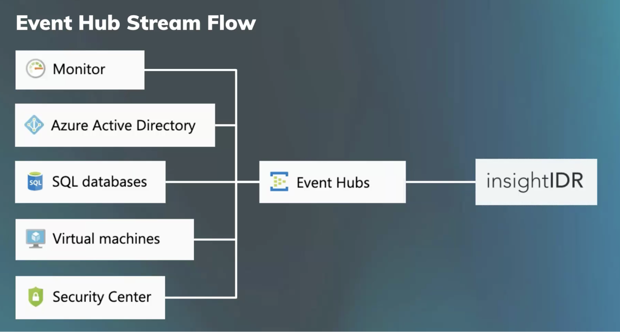 Rapid7 SIEM ingests logs from Event Hubs to consolidate Azure data alongside the other relevant data from across your network (e.g., other cloud data, application data, or logs from on-premises systems).