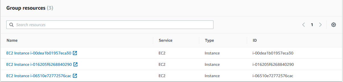 You can select multiple tags, but for this example, we’ll stick with the above. If you select the View group resources, you will see a list of all instances matching that tag:
