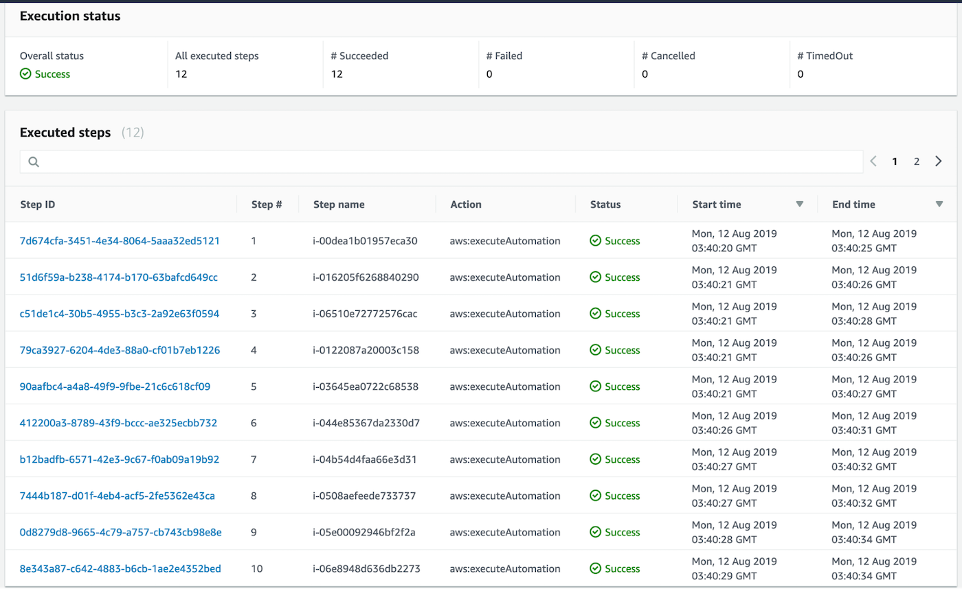 For rate control, we will leave the default settings (feel free to adjust these, though!). There is also a copy of the command at the bottom you can copy to run again if you’d like. After all that is filled out, we are ready to run our automation. As you can see, this ran successfully against all my EC2 instances across three accounts: