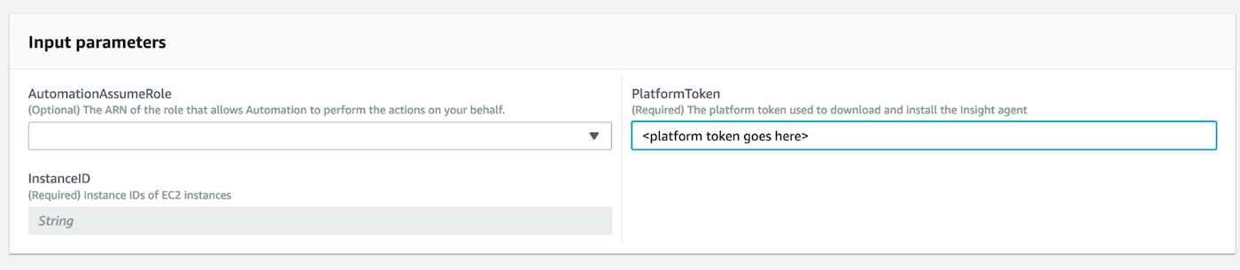 After that, the next section simply needs our Insight Agent installer token (instructions can be found here for obtaining this from the Insight Platform), so go ahead and paste that in the required field: