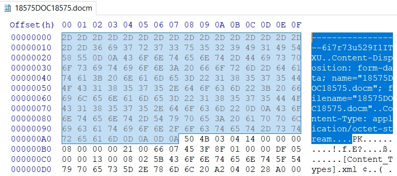 It is possible that the document headers were mistakenly prepended—however, the nature of the malformed document's error indicates that the malformed headers are used to circumvent antivirus solutions or act as an anti-sandboxing technique: