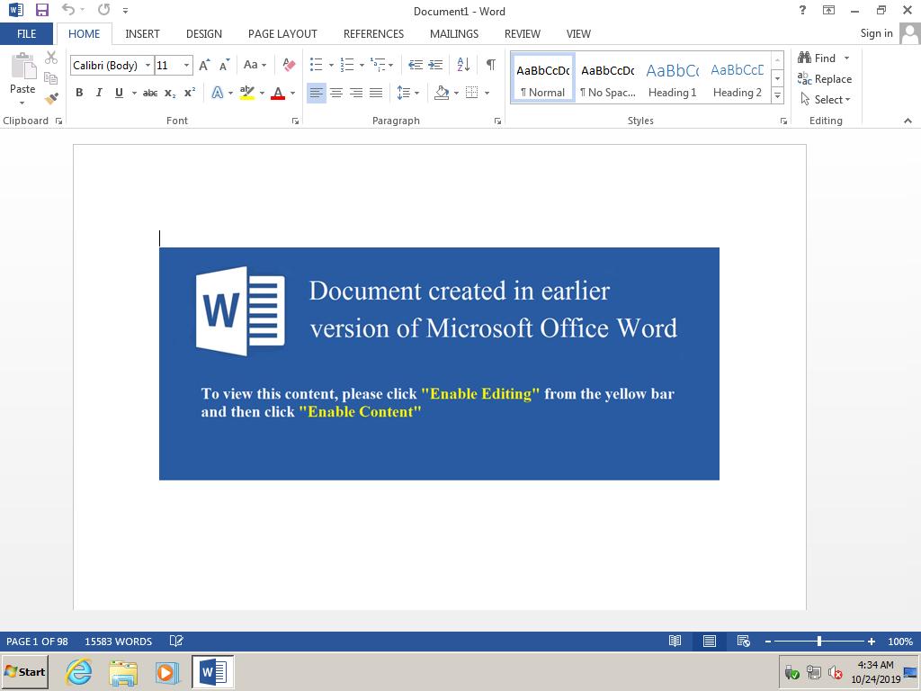 In this instance, upon opening the document in Microsoft Word, the malicious document displays the following error: “We’re sorry. We can't open 18575DOC18575 because we found a problem with its contents."