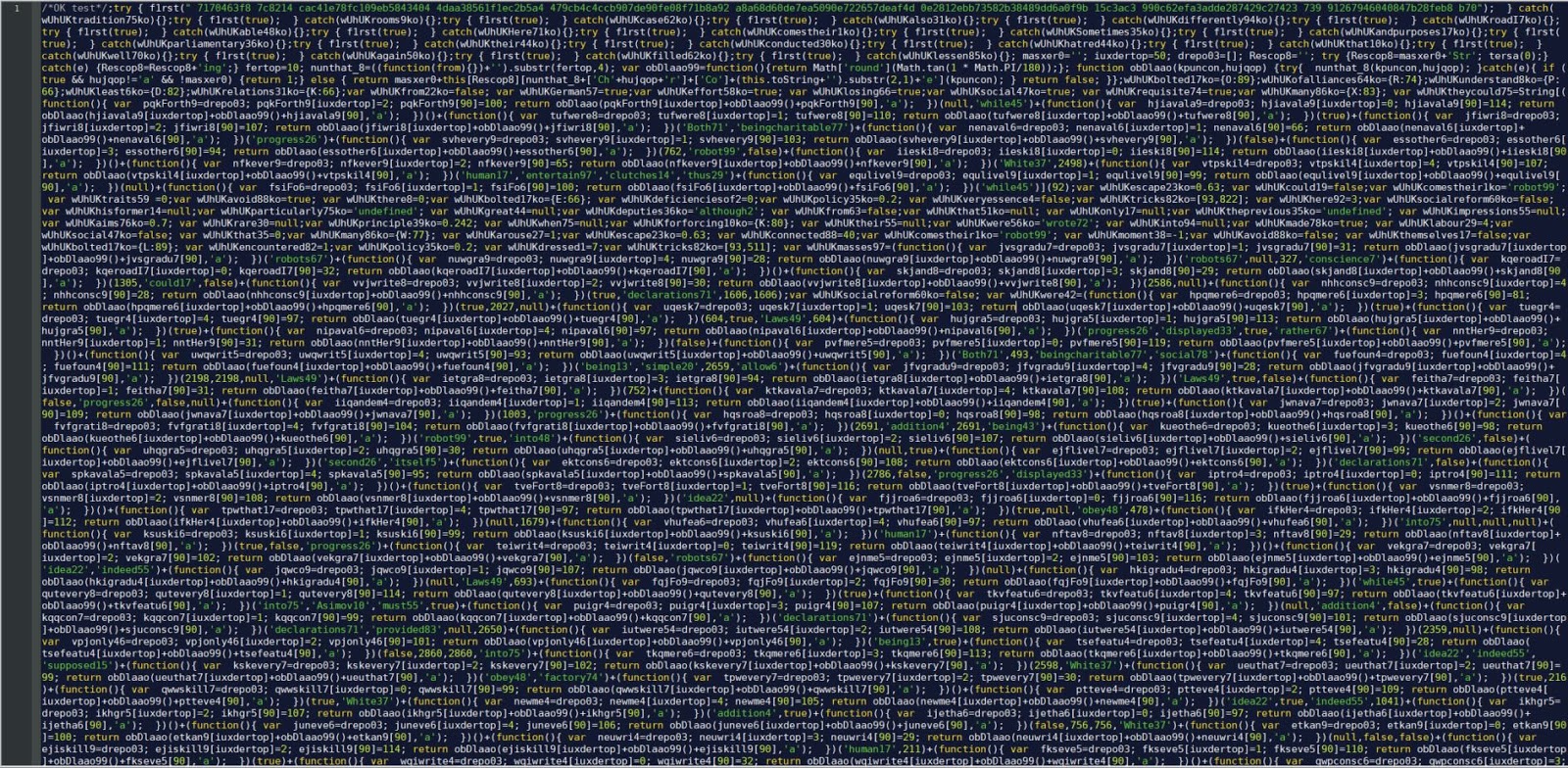 Using a tool such as CyberChef's "JavaScript Beautify" recipe, we can format the obfuscated code to be more readable.