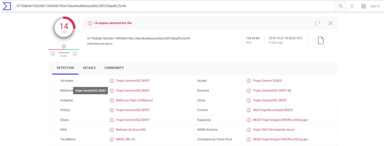 Overall, malicious documents are one of the most common methods of initial breach. The sample analyzed incorporated malformed document headers, malicious embedded VBA macros, PowerShell commands, heavily obfuscated JScript, startup persistence, and payload hiding in NTFS alternate data streams. These are techniques which evaded the detection of many antivirus solutions.