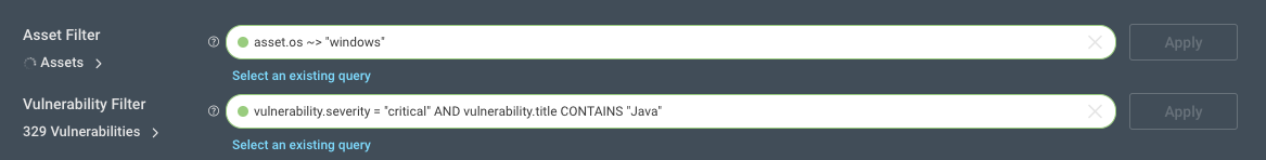Query Builder is more intuitive and easier to use than previous asset and vulnerability filters in InsightVM. With Query Builder, you can do the following: