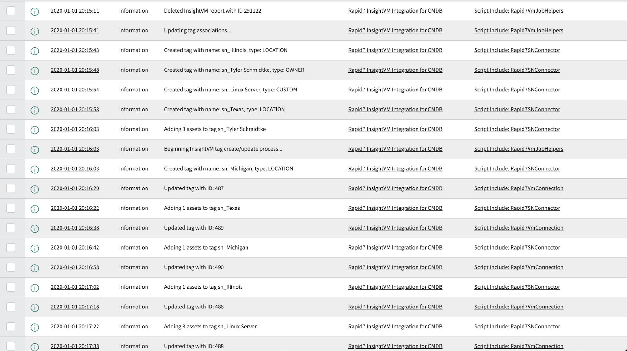 - InsightVM Asset Tagging: Create/update InsightVM tags and tagged assets based on ServiceNow CMDB CI (Configuration Item) data.