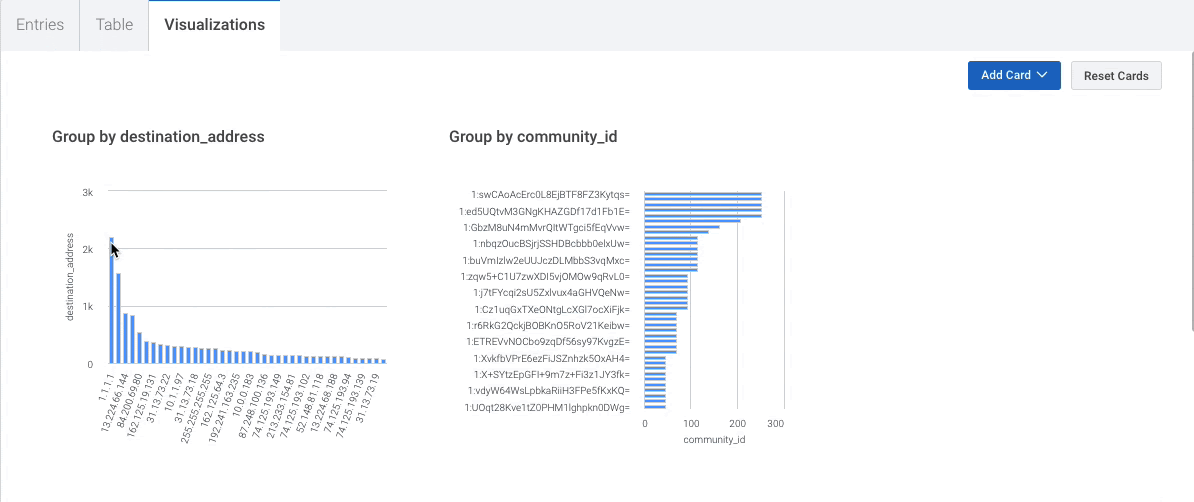 It’s easy to make new data cards in the visualizations tab. When adding a card, available metadata filters automatically populate as options to visualize. Preview card layouts before you create them. Then, easily slide across cards to rearrange data to highlight the items that matter most to you.