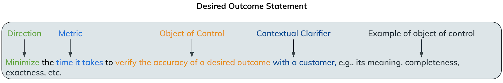 The Rapid7 team structured desired outcomes identified through the Jobs To Be Done research by using the following statement formula: