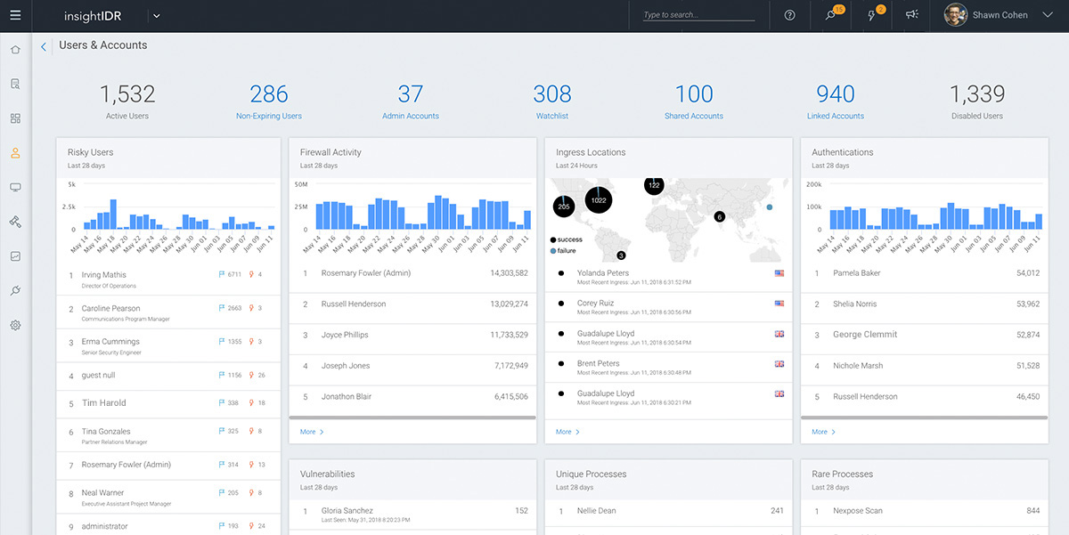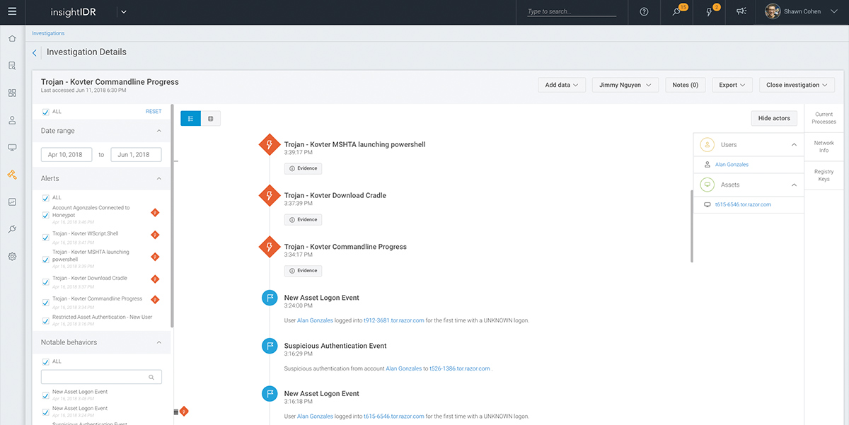 Modern SIEMs streamline this process by ingesting and transforming data at scale. InsightIDR does even more to go beyond just log collection and management. Once InsightIDR collects data, it’s normalized, attributed to users and systems, and then enriched. This approach structures the data and analytics for investigations, empowering analyst visibility and action.