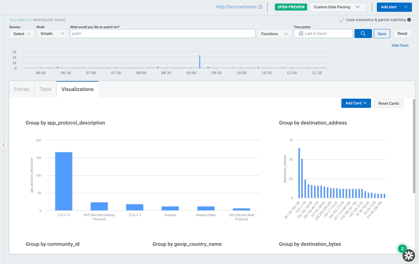 Both the DNS and DHCP metadata are sent to existing log sets and are also used for attribution (user and assent) of other log data. The sensor is filling blind spots where logs are not available or may be incomplete. For example, this might be used to help correlate unknown hosts to IPs to Macs, if needed; we’ve also seen instances where the Sensor’s DNS collection may catch items that are missed by the DNS server.