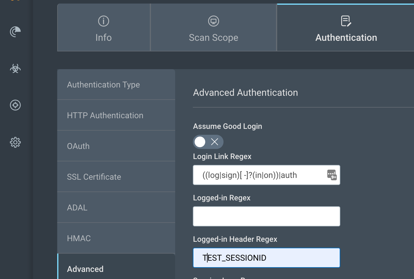 One key point to remember is that when using Logged-in Header Regex, it is important to delete any Logged-in Regex value above, as we do not want both regex values to be used as part of our scan. A success on one will pass the authentication after the macro execution is successful.