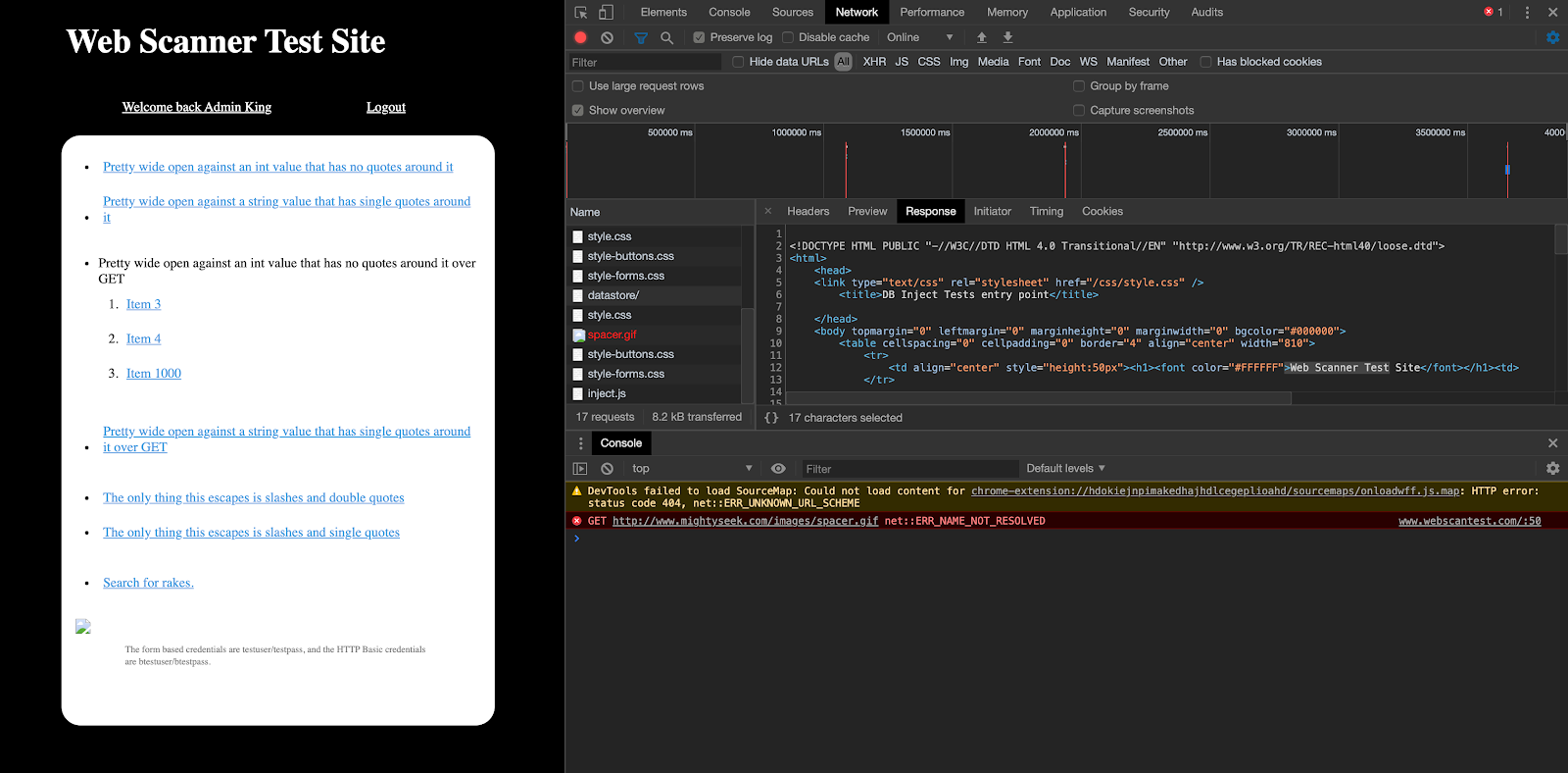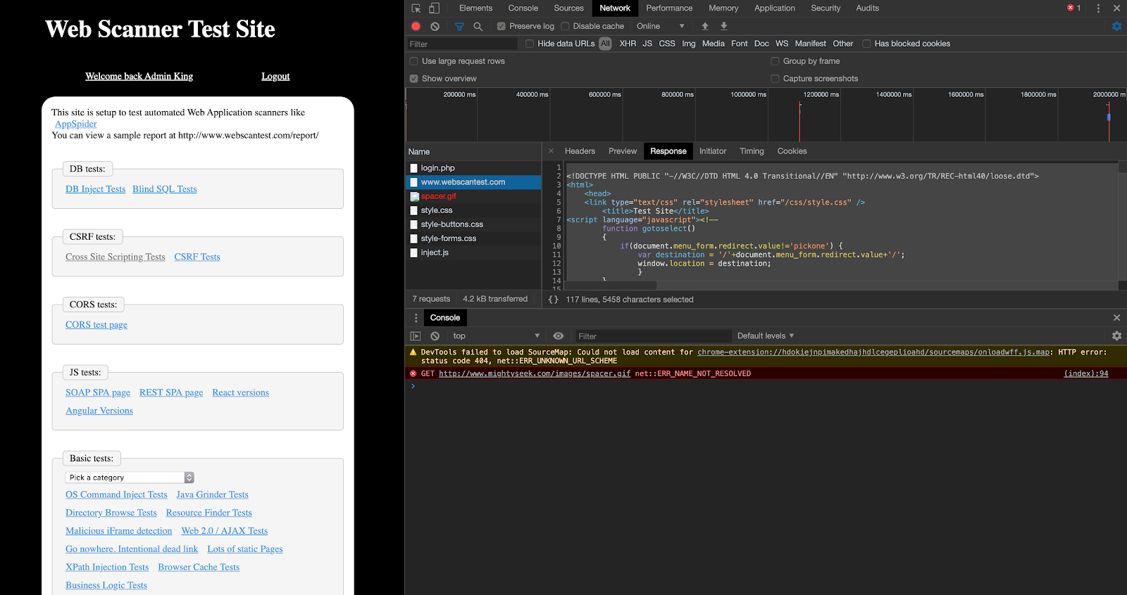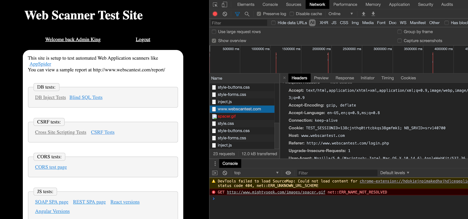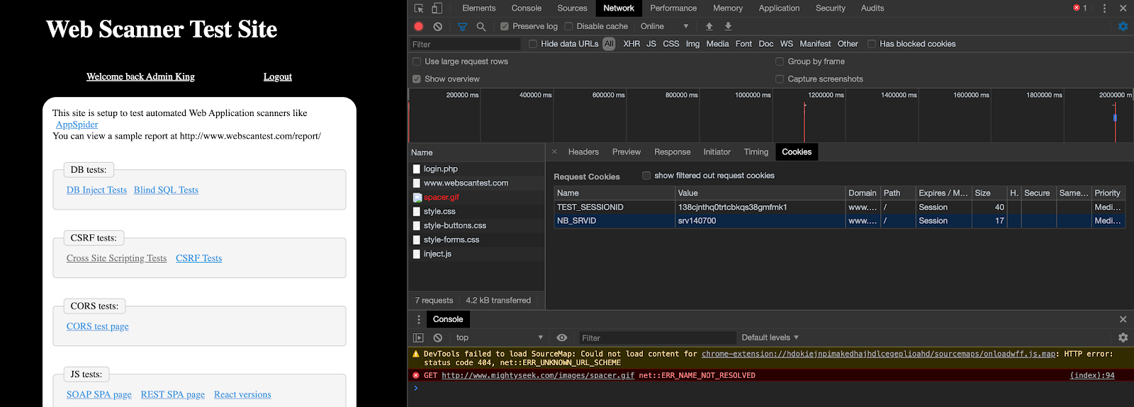 To know which step to take above, it's best to go back to our web application and attempt to re-authenticate into it. You can do this in your browser, by having the Developer tools open to the network tab and making sure to view either the response of the page we landed on or the cookies tab, both of which will come in handy as we test out our regex for the scan configuration.