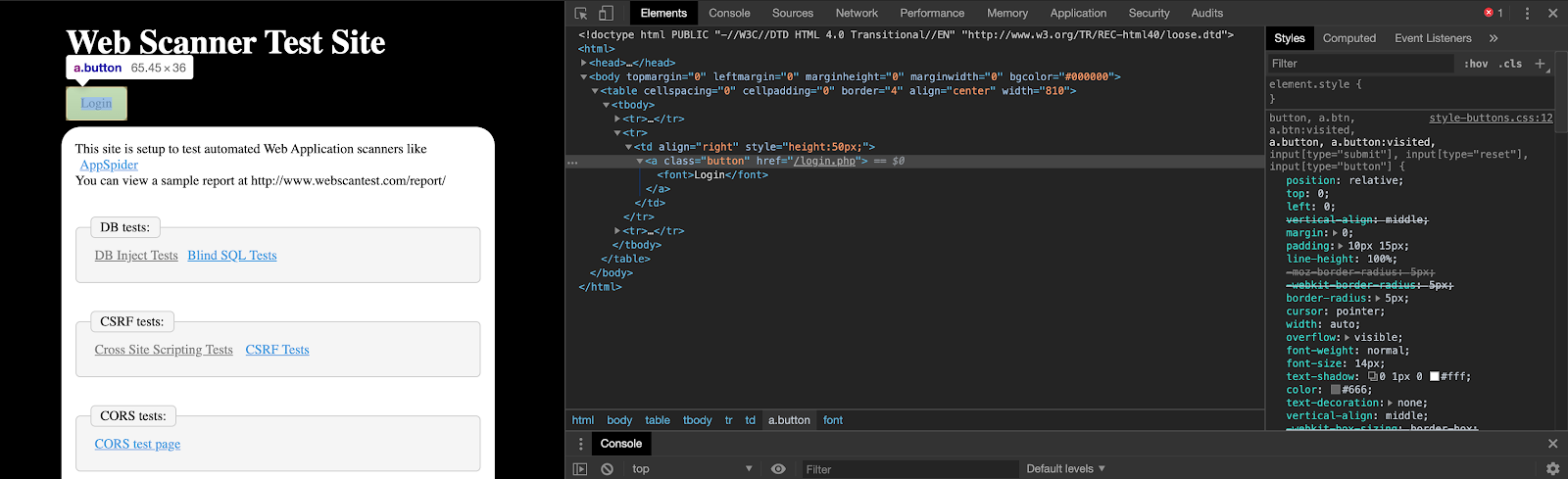 Upon inspecting “Element” for one of the first buttons we clicked on when we began recording, we see that the field we are looking for is “login.” “Lgin” is actually incorrect and doesn’t exist, so therefore, it cannot be found.