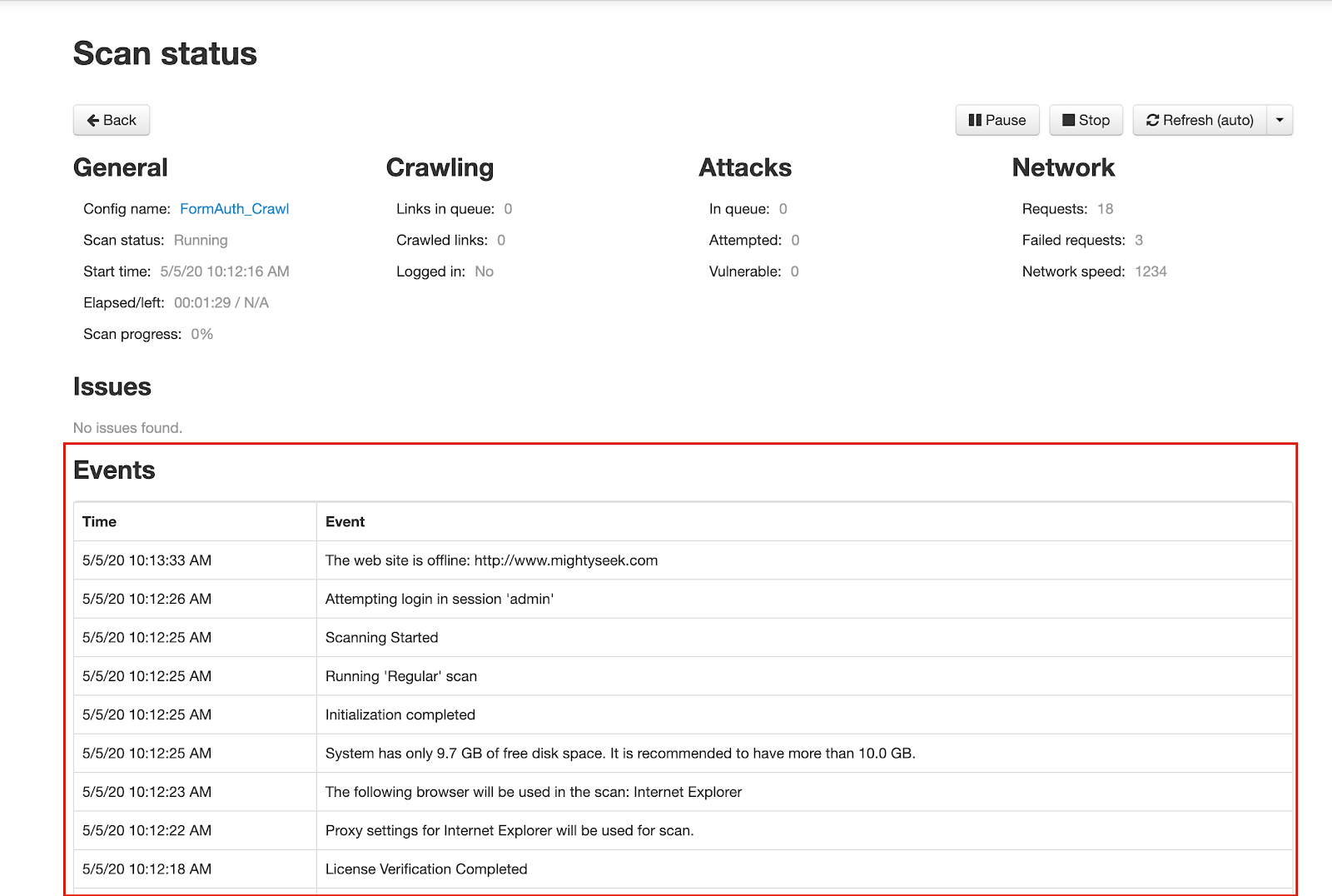 - Verify again the perspective of your application and how InsightAppSec or AppSpider will “see” it. If your application is accessible only after allowing traffic between servers, it would be worth going onto the server the scan is running from. In this case, we assume you are leveraging an on-premises engine connected to InsightAppSec or AppSpiderEnterprise, which you should have access to in order to log on and test the authentication process from a browser there. If you notice a difference in the authentication sequence this time compared to the first time when you recorded it, it may make sense to re-record the macro according to the current authentication sequence.