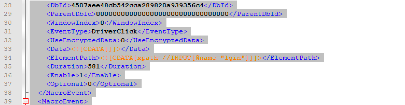 Keep in mind that each <MacroEvent>... </MacroEvent> is one step, so you will need to count from the first macro event at the top down to the step mentioned in the event log error. Since this particular error is in step three, that means it is very early in the macro, and because it failed, the macro failed to execute any other macro events succeeding it. Our error message indicates that: