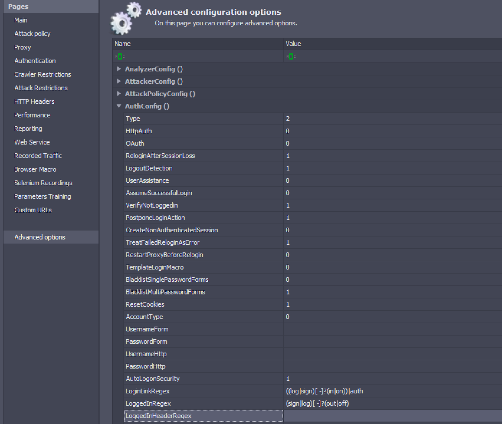 When a scan replays various macro events based on the exact sequence of events as recorded, it is expected that, at the end, the page the scanner is now rendering should be a page you only see after successfully logging in. In order to confirm that we are now in an authenticated portion of the application, the scanner leverages a Logged-In regex, which is by default set to”(sign|log)[ -]?(out|off)“. This means that after executing all macro events, we are looking for elements in the HTML response that indicate sign out, sign off, log out or log off, as those elements should be visible in the HTML of a logged-in application. (Ideally, you can only see a logout button if you are actually logged in). If the regex successfully passes, a macro used for authentication will successfully finish executing, the authentication event will be successful, and an authenticated scan will occur.