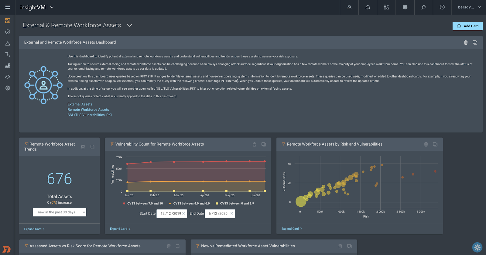 To help customers better track their remote workforce and external-facing assets, we released the External and Remote Workforce Assets Dashboard. With this dashboard, customers can identify remote workforce assets, such as employee laptops, track key performance indicators (KPIs) to monitor their changing environment, and leverage information around exposure to encryption-related vulnerabilities. The insights provided in the new dashboard enable customers to more efficiently manage and reduce security risk of these external-facing and remote assets. Specifically, customers can: