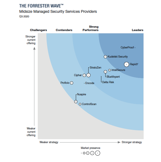 Rapid7 is thrilled to be named a Leader in The Forrester Wave™: Midsize Managed Security Services Providers, Q3 2020! The Forrester report states, “Recent acquisitions improved network analysis and visibility (NAV) and analytics, making the portfolio comprehensive enough to become a viable alternative to traditional MSSPs.”