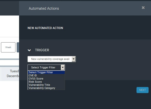 Next, we will click the dropdown and select “New Vulnerability Coverage Available” as the trigger. New Vulnerability Coverage Available works because Rapid7 changed the way content updates work, which allows the dev team to push out new updates any day, all week long, without restarting the console service. This means new content could be downloaded into your console whenever there is new content available, like new zero days!