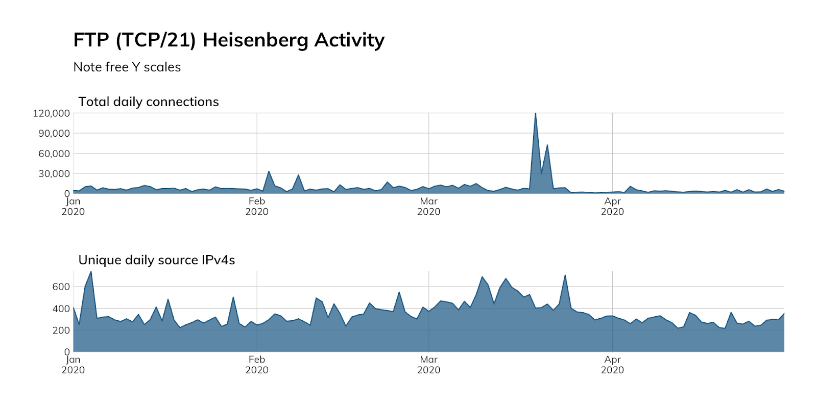 Project Heisenberg does not have an FTP honeypot, but we do capture all connection attempts on TCP/21, and there are often quite a few: