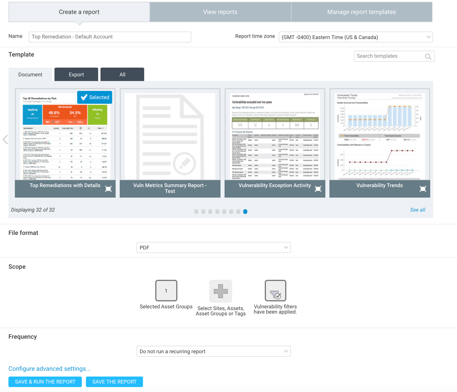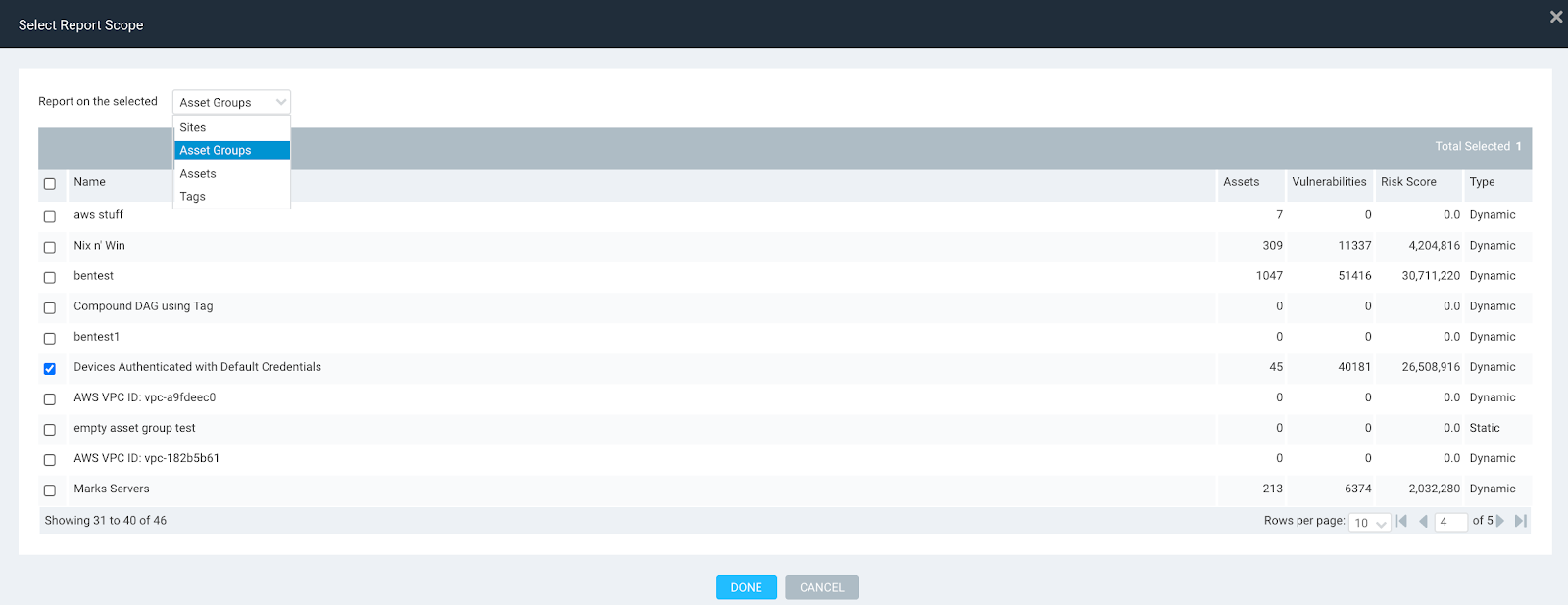 To solve this challenge, we can use a lesser-known feature when creating a report called a ‘Vulnerability Filters have been applied’. Then, scope a report with the ‘Devices Authenticated with Default Creds’ DAG we just created in the previous step.