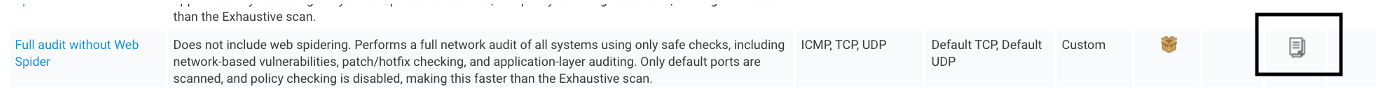 Once you have this page open, you will see a bunch of options available. We are going to use a starting template of the “Full Audit without Web Spider,” so find the copy icon next to that scan template, and click on it.