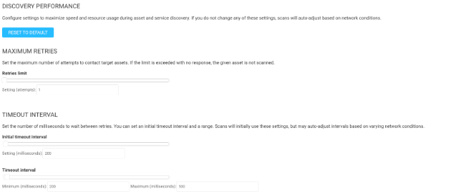 Next, regarding the Timeout Interval settings, these are more related to network latency. Again, most networks today are extremely robust, and ping times are usually in the low teens and maybe spike to a hundred from time to time, but never over 200. Unless you’re using an engine to scan devices across the world or via high-latency satellite connections, my recommendation is to lower the minimums from 500 to 200 and the maximums from 3000 to 500.