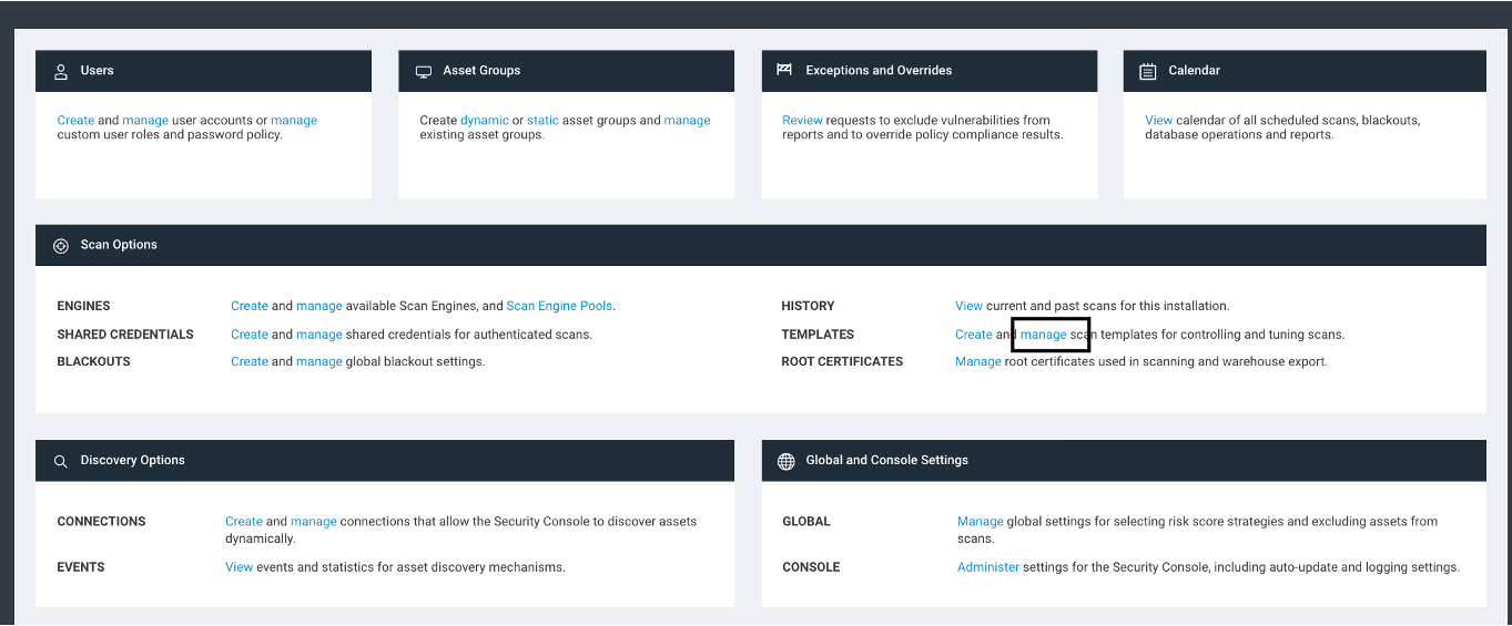 First, you will need to go to the Administration page, then click on Templates > Manage under the Scan options section.