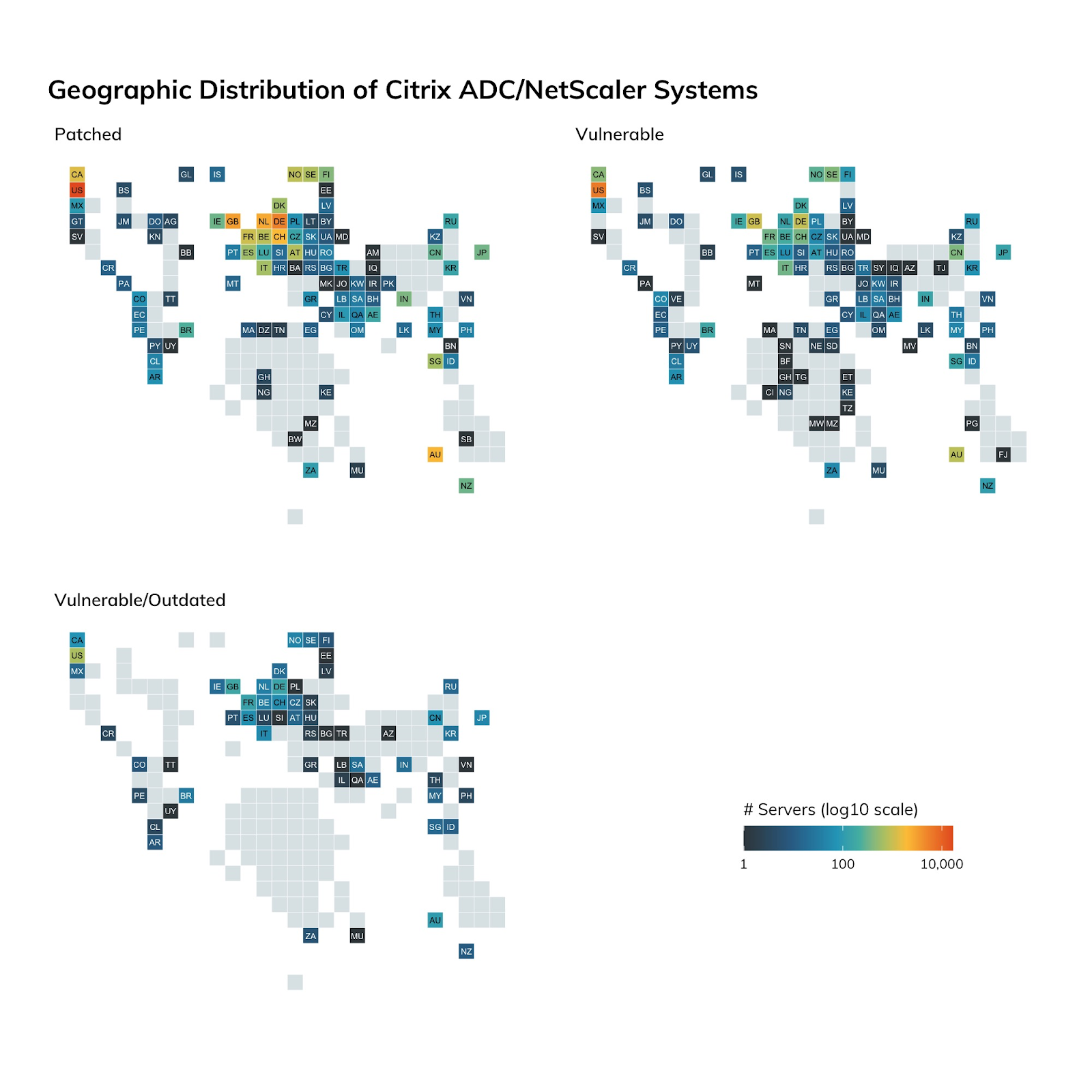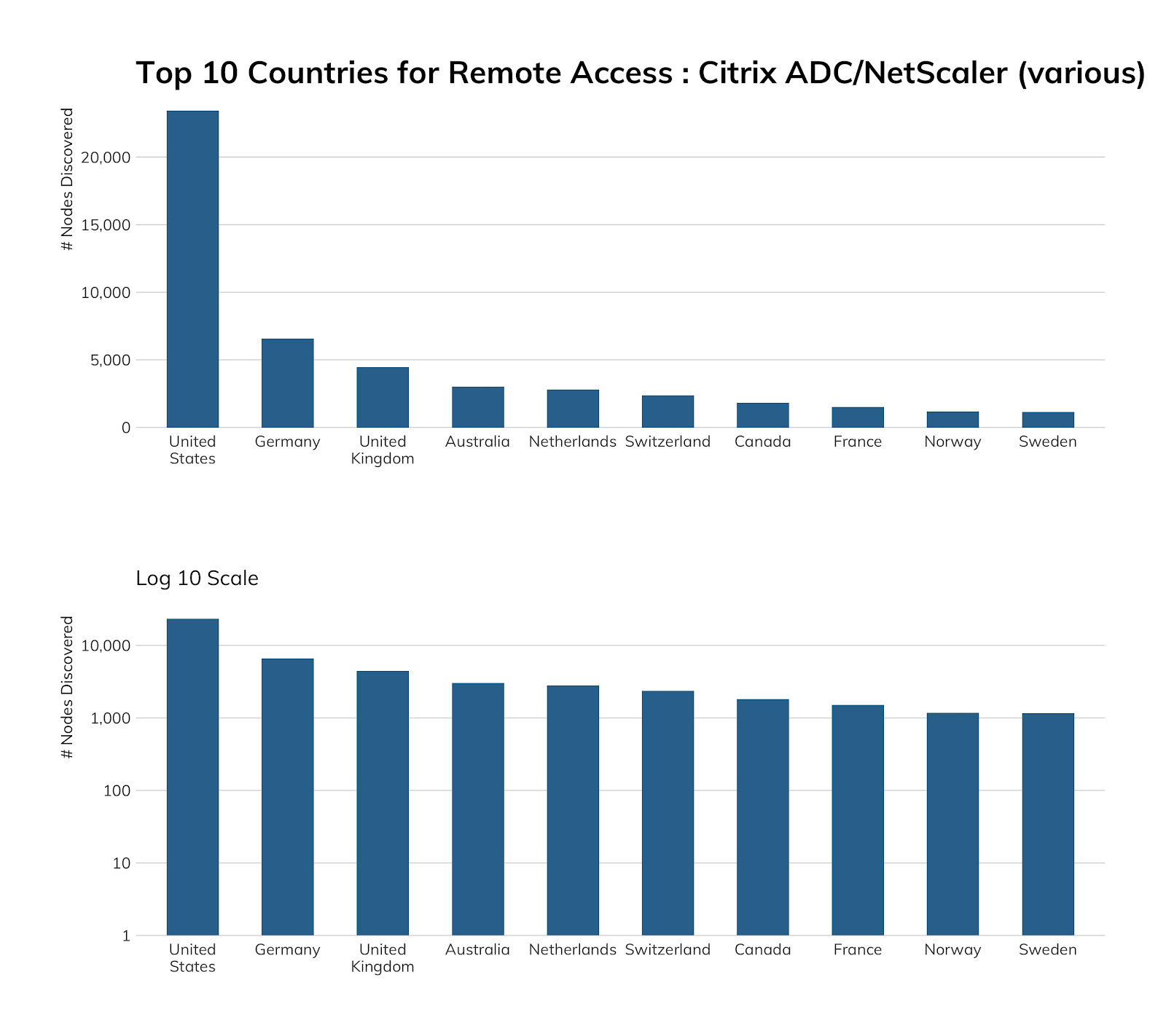 Unlike many other top 10 country lists in this report, China failed to even beat out Sweden in their internet-facing exposure of Citrix systems.