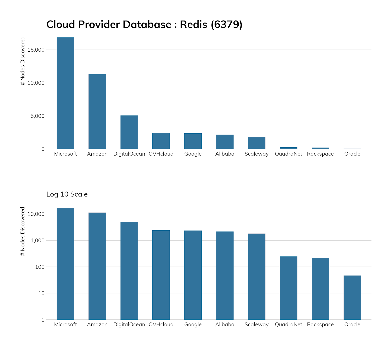 Finding Redis in cloud environments is no real surprise, since that’s where a great deal of public web applications reside today. Microsoft tops the list, as it relies heavily on Redis for its Azure Cache offering, and Amazon’s second-place finish is a result of direct AWS support for Redis and their Redis-compatible ElastiCache service.