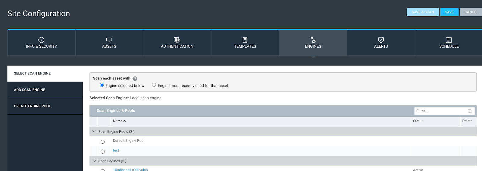 The reason why I went with the screenshot above for our site example is to show you a very cool feature that doesn’t get much use unless you are scoping a site with a DAG. That is the ‘Engine most recently used for the asset’ option. Even if you have multiple engines throughout your environment, in different networks behind firewalls, whatever it may be, the Dynamic Asset Group will not care, because we scoped it only using the OS, which means we can use this feature to dynamically use the last engine used for each asset for holistic policy-based scanning. This can be a very cool feature allowing us to scan all of a particular OS in the entire environment with a single site (which means less complexity!).
