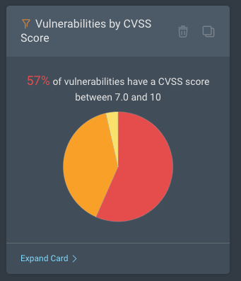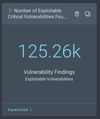 This card shows all vulnerabilities with a severity of critical and known exploits. These provide a powerful view into vulnerabilities attackers could easily exploit.
