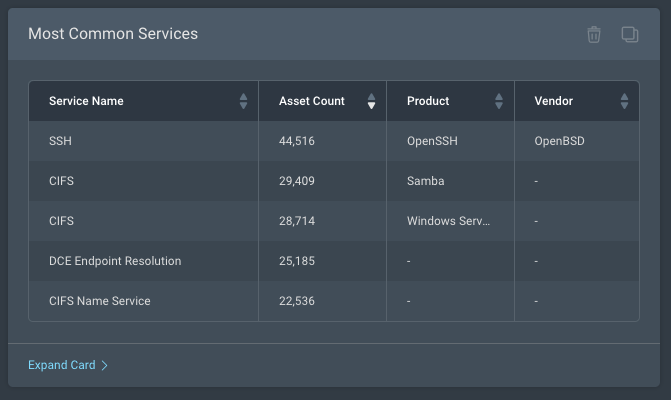 This card shows the services most commonly deployed in their environment, giving them insight into what could be of the most importance.