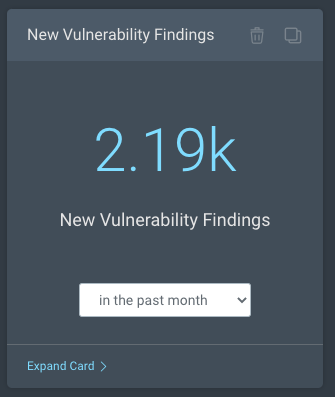 This card shows the total number of vulnerability findings discovered in the past 30 days, and expanding this view shows a list of these. This allows teams to identify recent vulnerabilities and prioritize those accordingly.