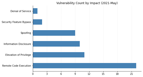 Not to be outdone, Exchange Server is back again with yet another patch. This one is not nearly as high profile as the recent vulnerability which saw widespread use, but still an important patch to apply given that Exchange Servers are almost always exposed to the internet. There are a few other less severe vulnerabilities this month for Exchange which were disclosed at Pwn2Own in April. We expect to see a continued focus on Exchange Server in the months to come.