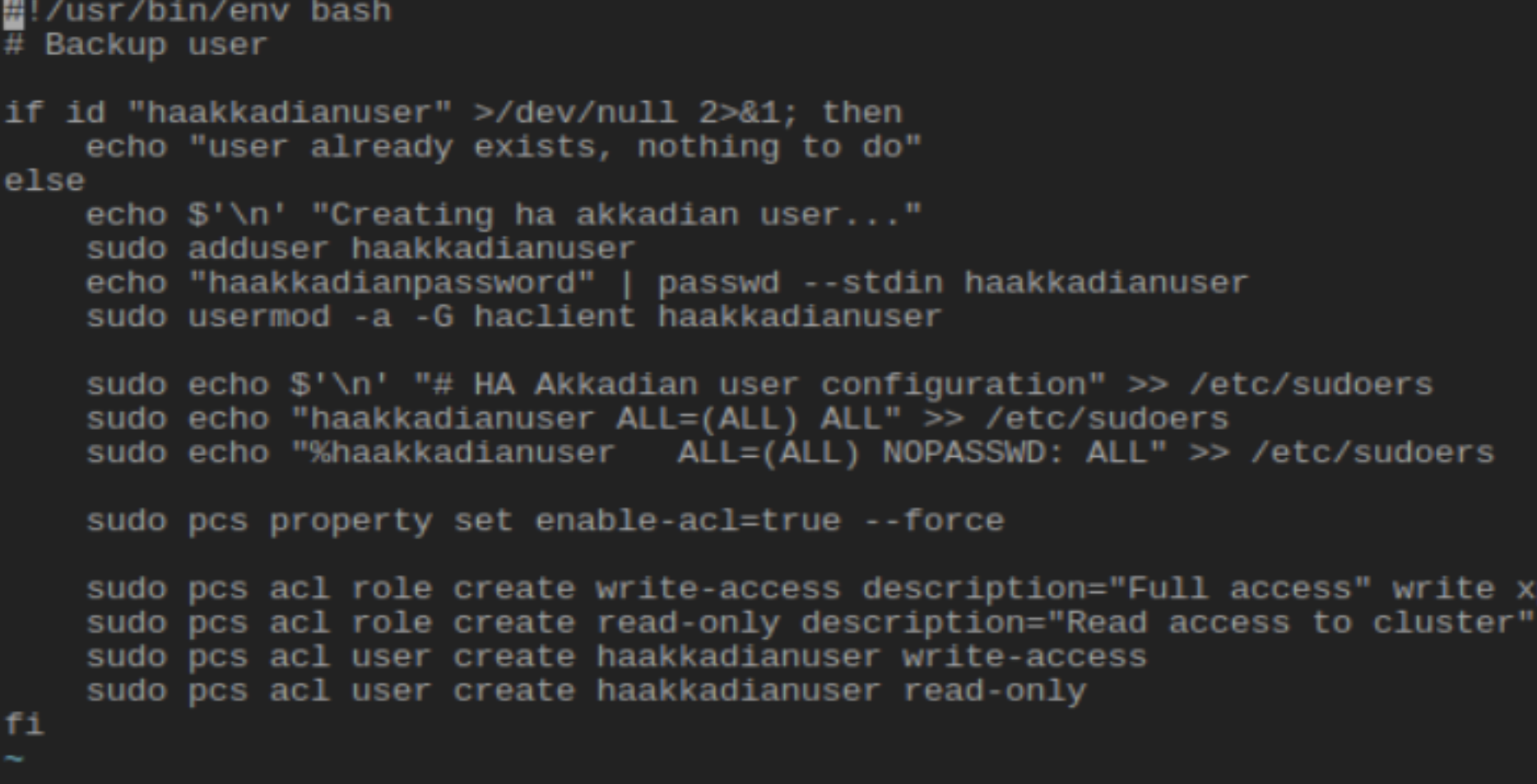 Rapid7 researchers identified developer configuration scripts for configuring a high availability user, /home/akkadianuser/scripts/create_haakkadianuser.sh and /home/akkadianuser/tmp/akkappmanager_installation/scripts/create_haakkadianuser.sh. These scripts revealed that the high availability user was created with the default password `haakkadianpassword` as can be seen below: