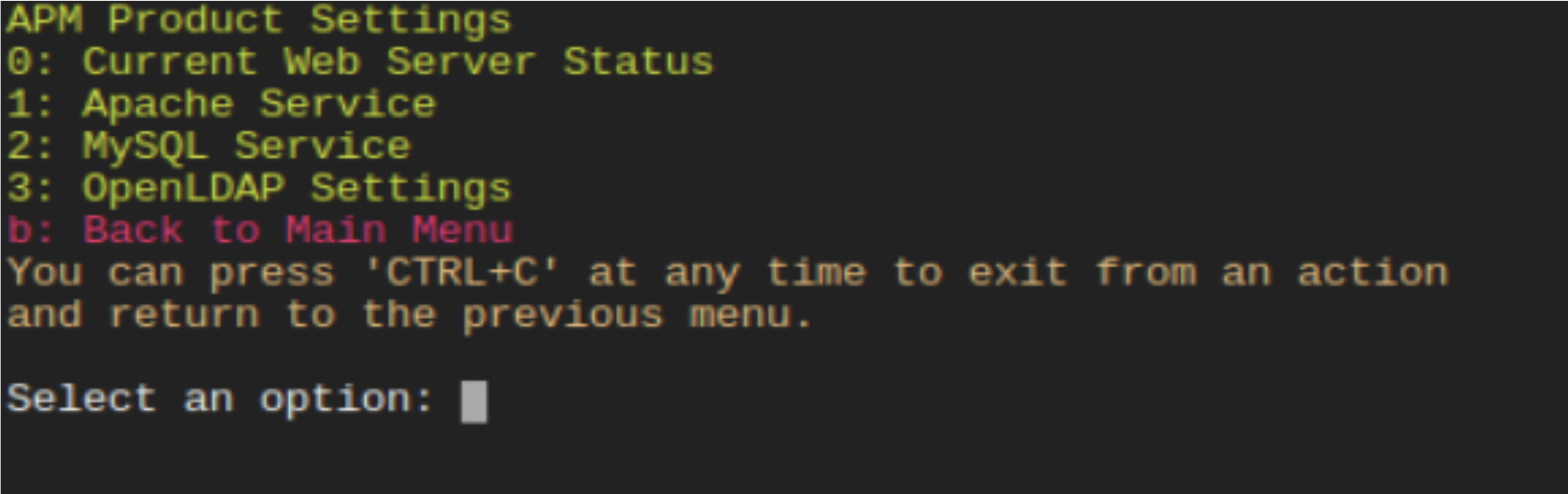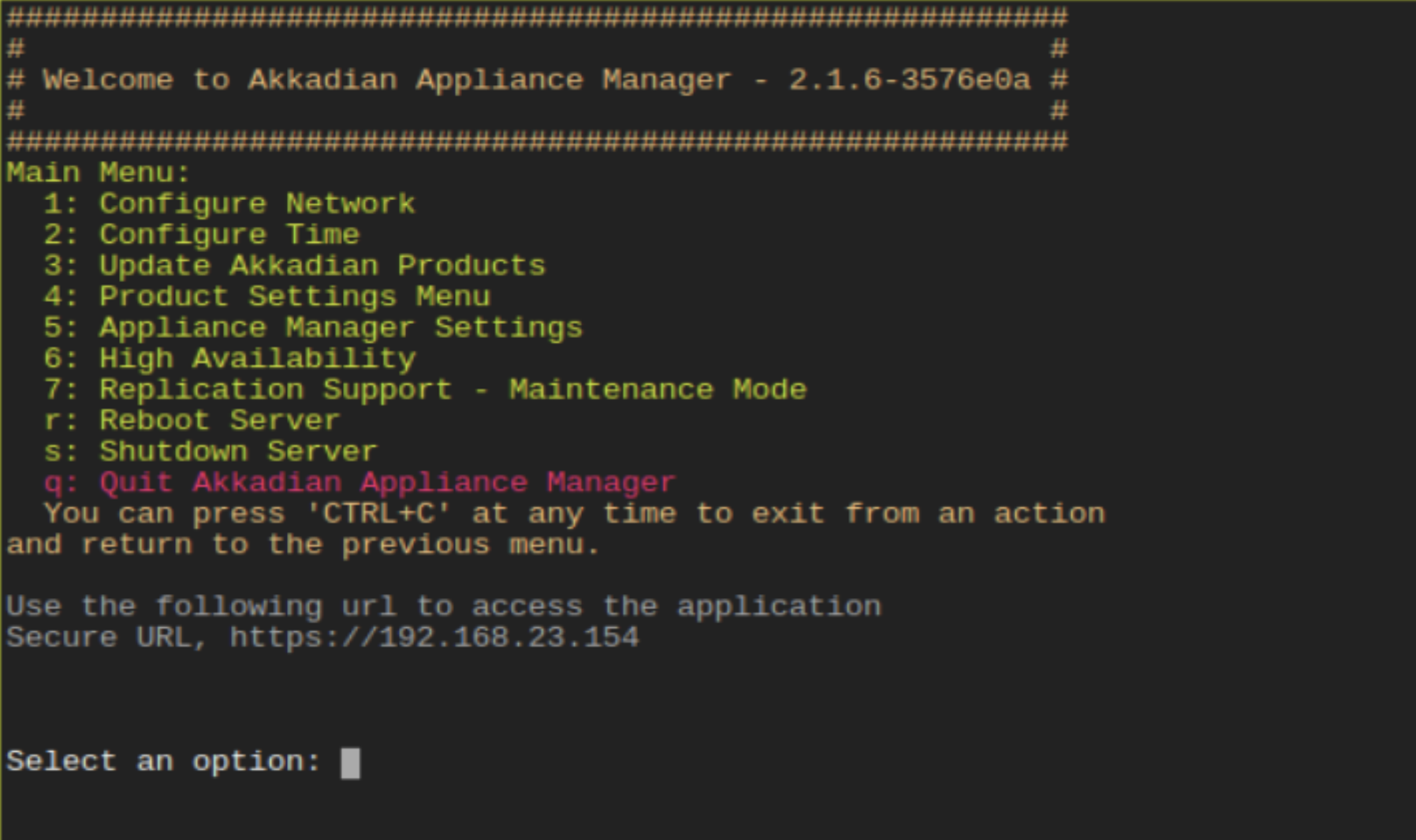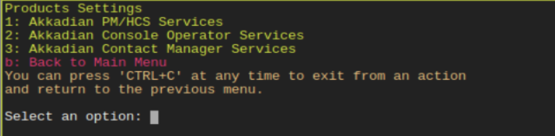 Select 1: Akkadian PM/HCS Services and the next set of options appears: