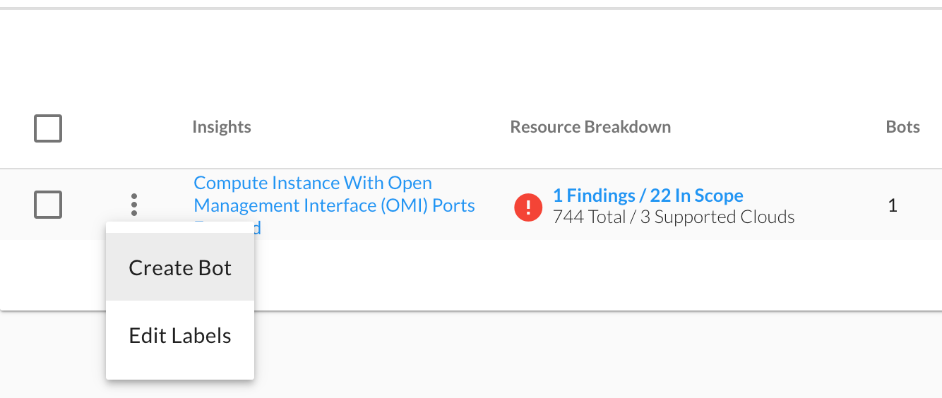 Leveraging the Create Bot option above allows the user to define the scope and desired remediation steps. For this particular issue we recommend that customers use the following workflow: