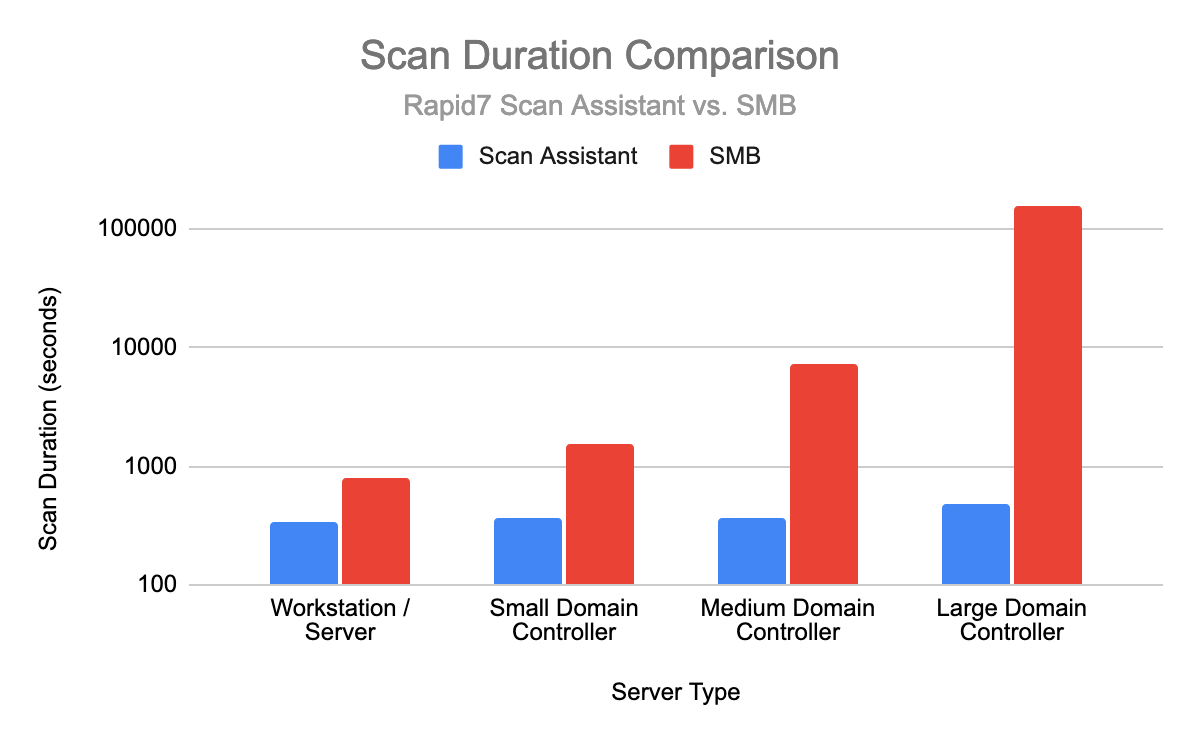 Furthermore, scan times for policy-based scans have shown significant improvement, particularly against servers with a large number of users and groups (such as Domain Controllers). The following chart compares scan times for policy-based scans performed against different types of servers. The team plans to continue to collect and analyze the performance of the Scan Assistant and will share this analysis in a future article.