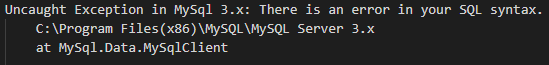 Now, instead of showing the results for an item with the ID of 3, the application gets confused by the single tick and throws a stack trace like this: