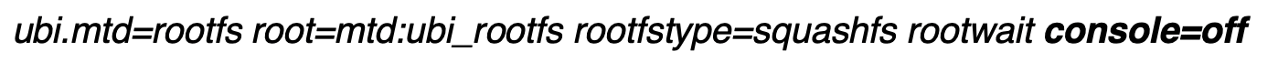 With a closer look at the bootargs variable as shown below in Figure 15, we can see that the console had been set to off. This is the reason the UART console halted during the boot process once the kernel was loaded.