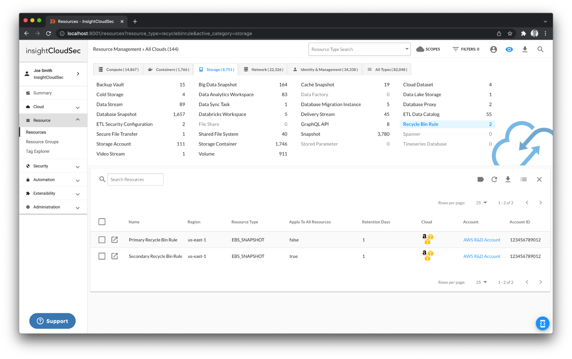 InsightCloudSec now provides visibility into these Recycle Bin Rules directly within the Resources section of the product. We’ve also included filters to identify accounts/regions where snapshots exist and recycle bin rules are not in place. These filters can help InsightCloudSec customers continue to meet their evolving governance needs.