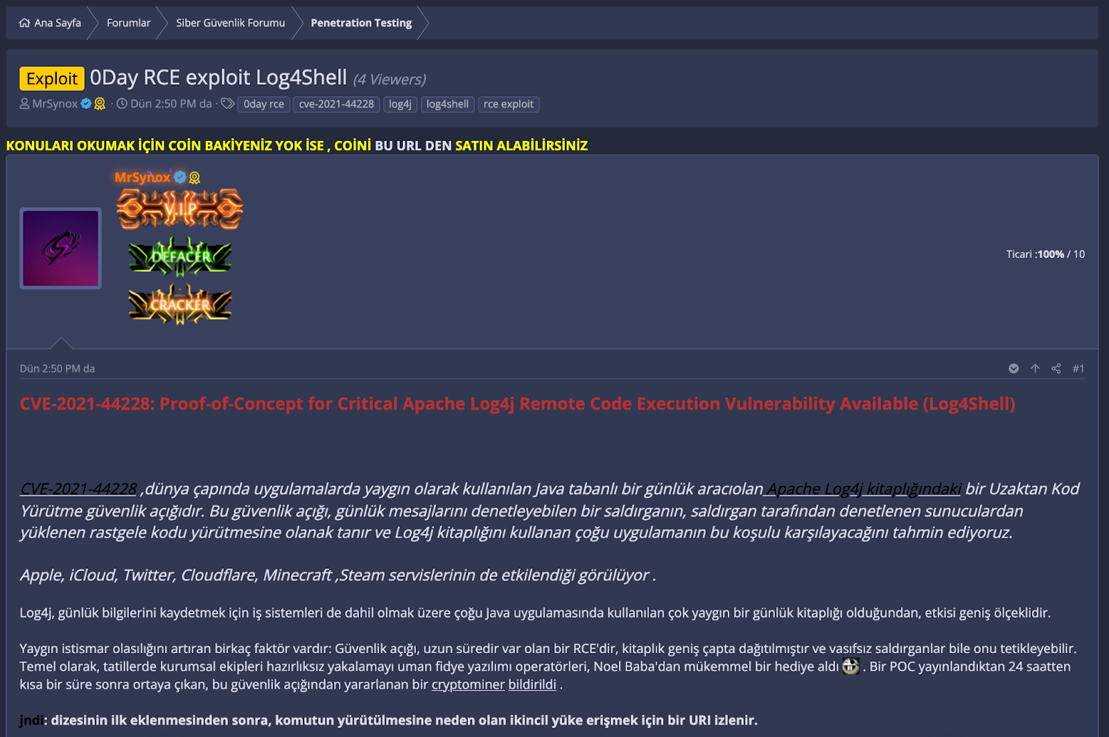 The bottom line is that threat actors are showing great interest in Log4j within underground communities, and they are leveraging these communities to share information and experience regarding exploiting this vulnerability. That emphasizes the need to quickly patch this vulnerability, before multiple cybercriminals put their hands on an exploit and start to utilize it on a large scale.