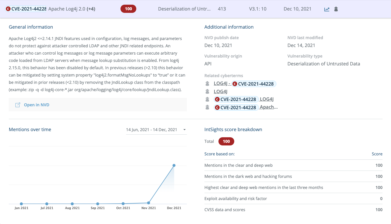 The Rapid7 Threat Intelligence team is tracking the attacker's-eye view and the related chatter on the clear, deep, and dark web within our Threat Intelligence platform. Here are 4 observations based on what we've seen at the onset of the identification of CVE-2021-44228.