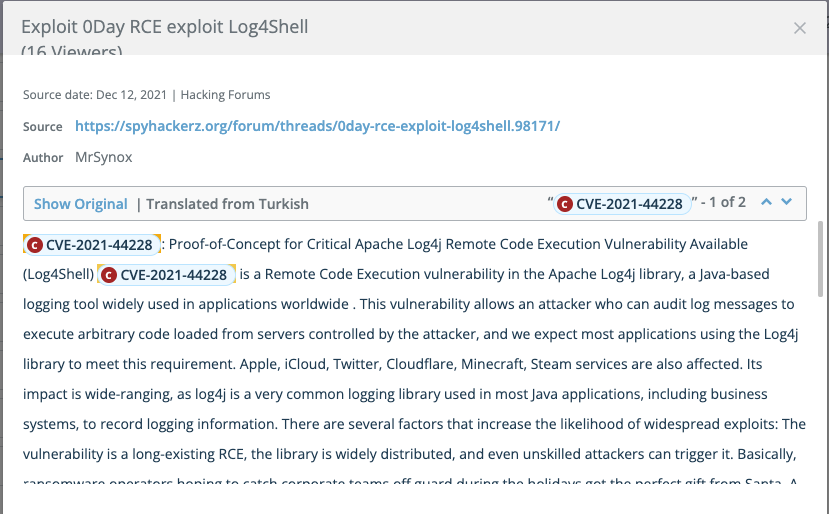 2. Hackers – specifically from the Russian, Chinese, and Turkish communities – show interest in the vulnerability and are actively sharing scanners and exploits.