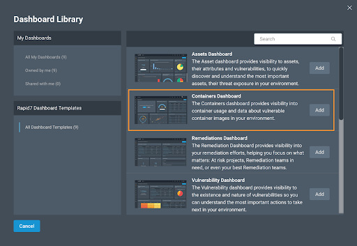 Customers who are worried about vulnerable images in their container repos have been able to scan for CVE-2021-44228 using InsightVM’s Container Security since December 10 at 2pm ET, thanks to our integration with the Snyk vulnerability database. It is also possible to rerun an assessment on any images that are particularly sensitive to be sure of up-to-date results. Retrieve results via the Container API or the Containers Dashboard: