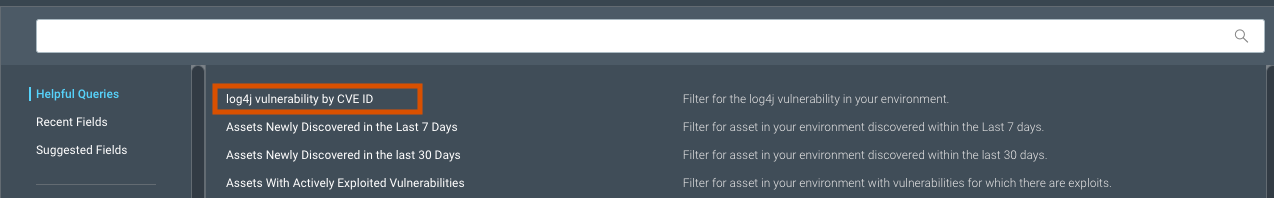 - Go to the helpful queries section and select the Log4j by CVE ID query.