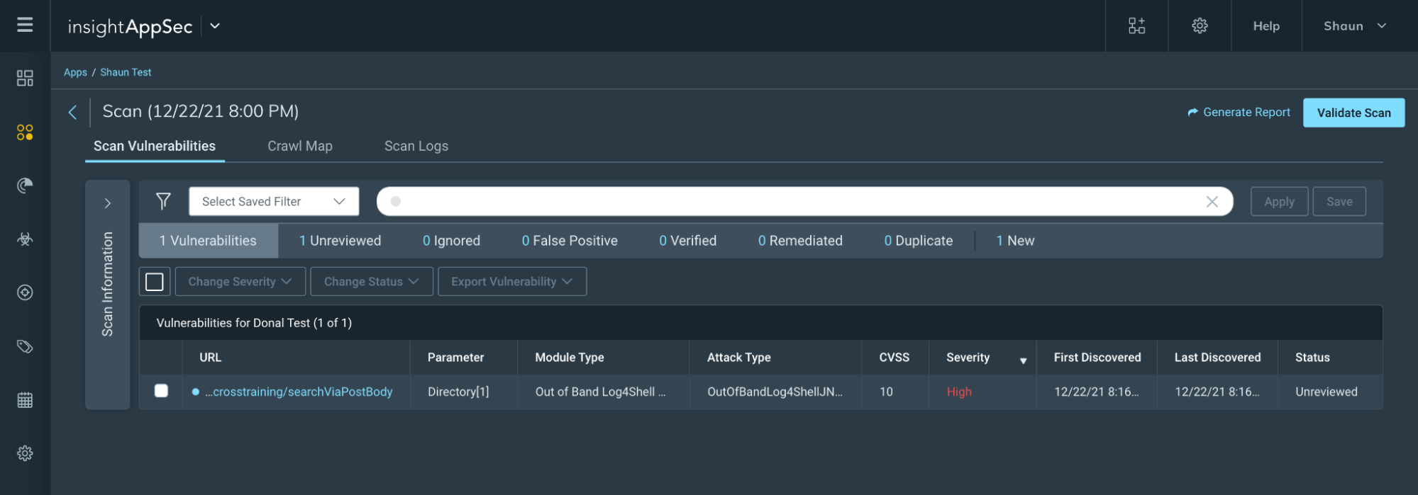 Now you run your scan, you can review your scan results to see if your app(s) have any findings that could be exposed as per the details in CVE-2021-44228.